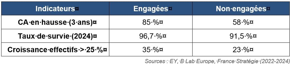 Et pourtant. Les chiffres sont là. Les entreprises dotées d’une raison d’être affichent une croissance du chiffre d’affaires supérieure de 27 points à leurs concurrentes. Les B Corp françaises survivent mieux aux crises , écart de 5,3 points en 2024. Les entreprises RSE dégagent un gain de performance de 13 %. Ces données ne prouvent pas que la mission fait le succès. Mais elles suggèrent qu’elle n’empêche pas d’y parvenir et qu’elle peut y contribuer.