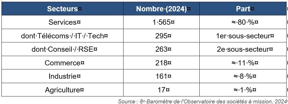 Cette croissance annuelle de 25 à 35 % traduit un engouement réel. Mais les sociétés à mission restent une infime minorité du tissu productif français : moins de 0,1 % des entreprises. La dynamique est qualifiée de « très forte » par l’Observatoire, mais le mouvement demeure concentré sur certains profils d’entreprise et secteurs.